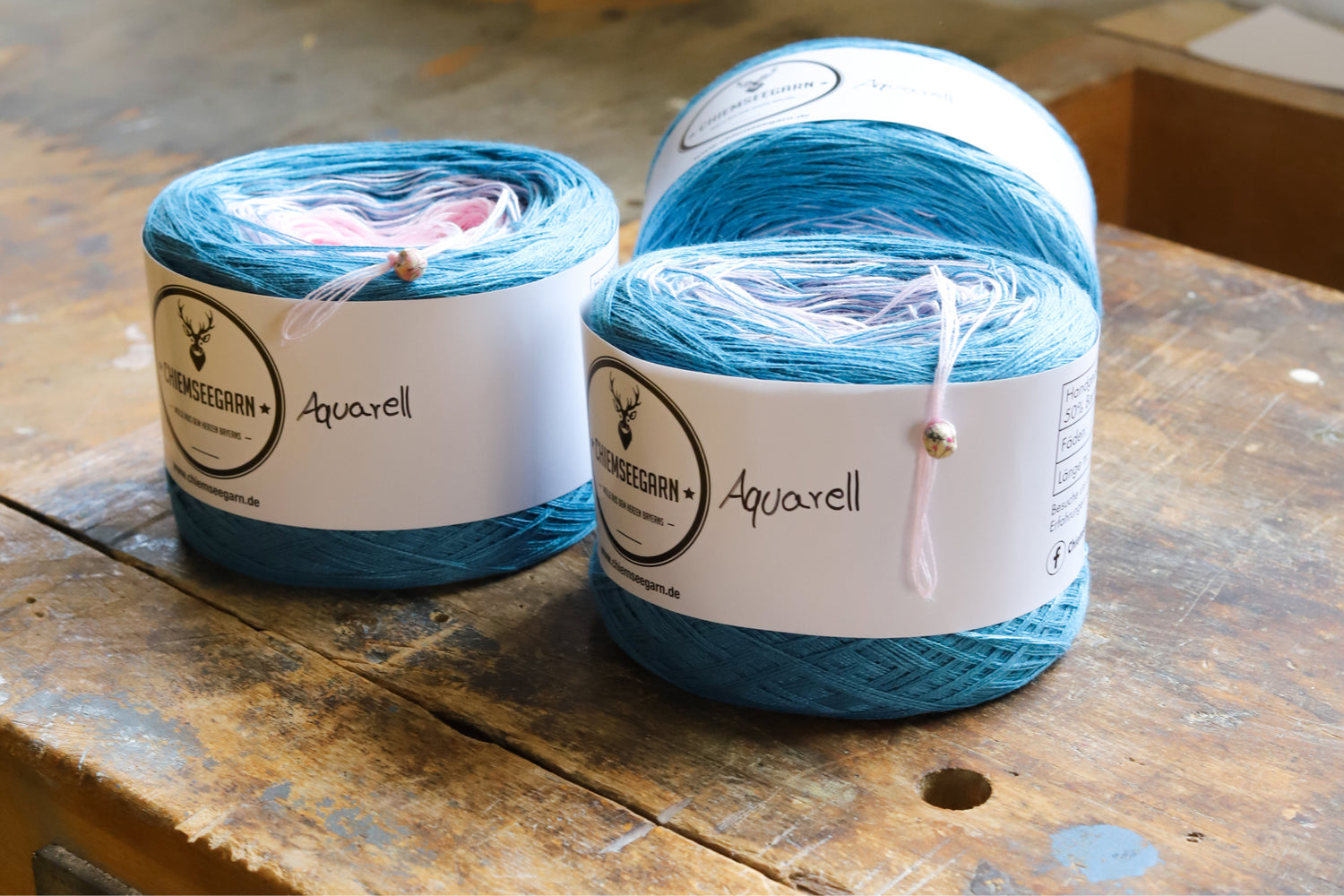 Handgfertigtes Farbverlaufsgarn aus 50 % Baumwolle / 50 % Polyacryl aus unserer Manufaktur im Chiemgau.