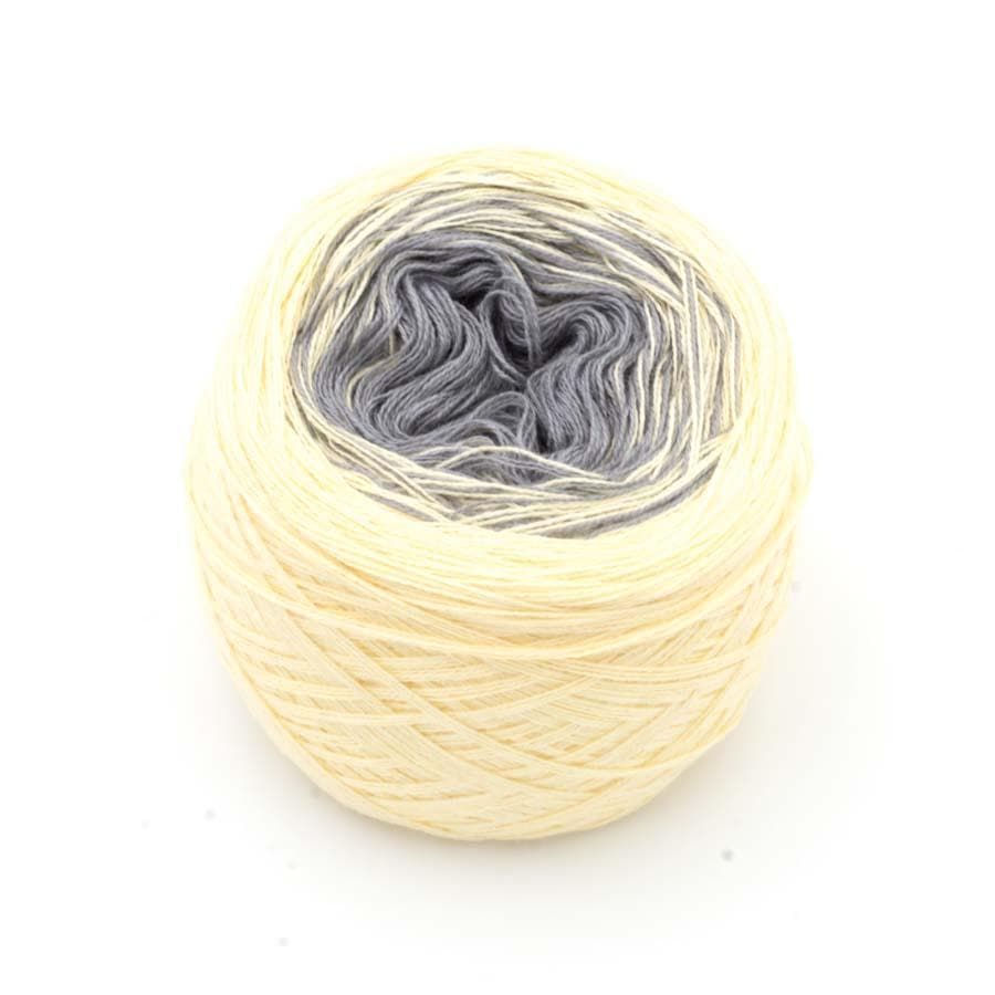 Die einzelnen Fäden werden durch feine, kaum sichtbare Knötchen miteinander verbunden. Diese sind gleichmäßig über das gesamte Garn verteilt und ermöglichen einen ruhigen, durchgängigen Farbverlauf über die komplette Länge. Das Ergebnis ist ein Garn, das sich beim Verarbeiten sanft entfaltet und deinem Strick- oder Häkelprojekt Tiefe, Charakter und eine ganz besondere Ausstrahlung verleiht.