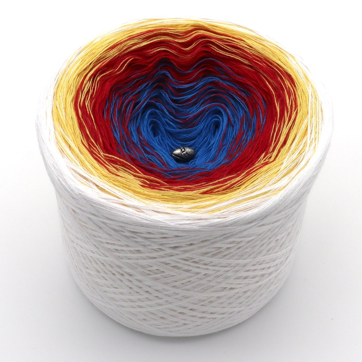 Handgfertigtes Farbverlaufsgarn aus 50% cotton / 50% acrylic aus unserer Manufaktur im Chiemgau.