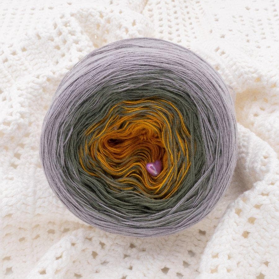 Die einzelnen Fäden werden durch feine, kaum sichtbare Knötchen miteinander verbunden. Diese sind gleichmäßig über das gesamte Garn verteilt und ermöglichen einen ruhigen, durchgängigen Farbverlauf über die komplette Länge. Das Ergebnis ist ein Garn, das sich beim Verarbeiten sanft entfaltet und deinem Strick- oder Häkelprojekt Tiefe, Charakter und eine ganz besondere Ausstrahlung verleiht.