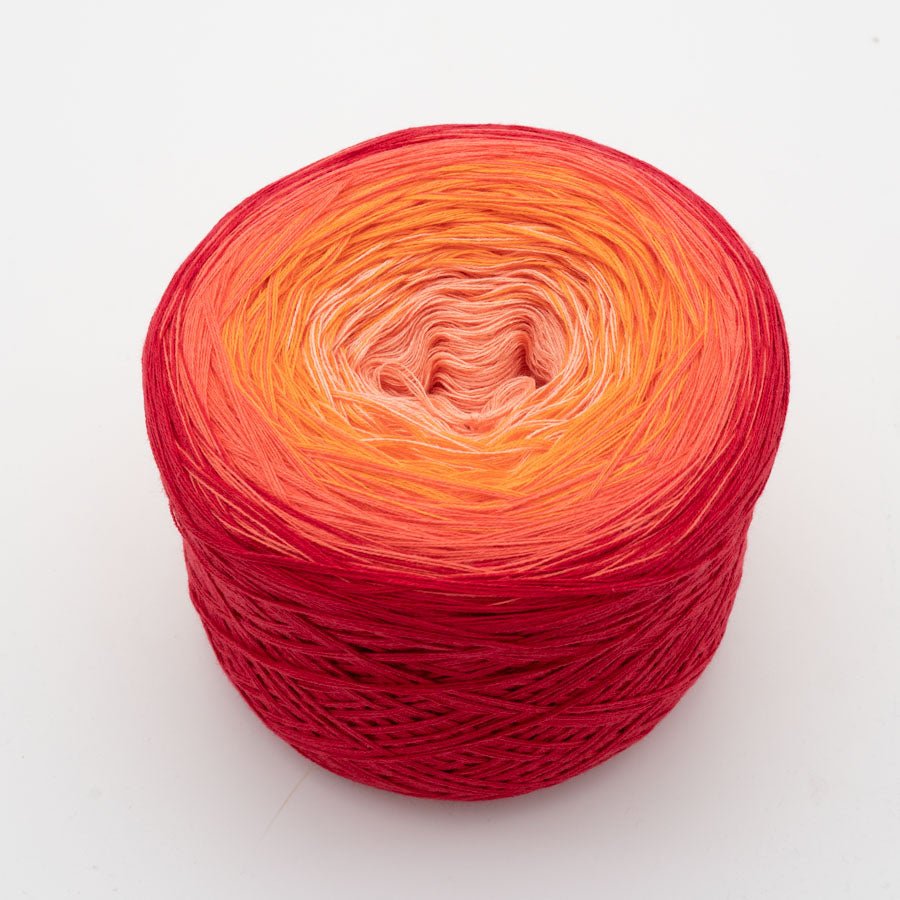 Handgfertigtes Farbverlaufsgarn aus 50 % Baumwolle / 50 % Polyacryl aus unserer Manufaktur im Chiemgau.