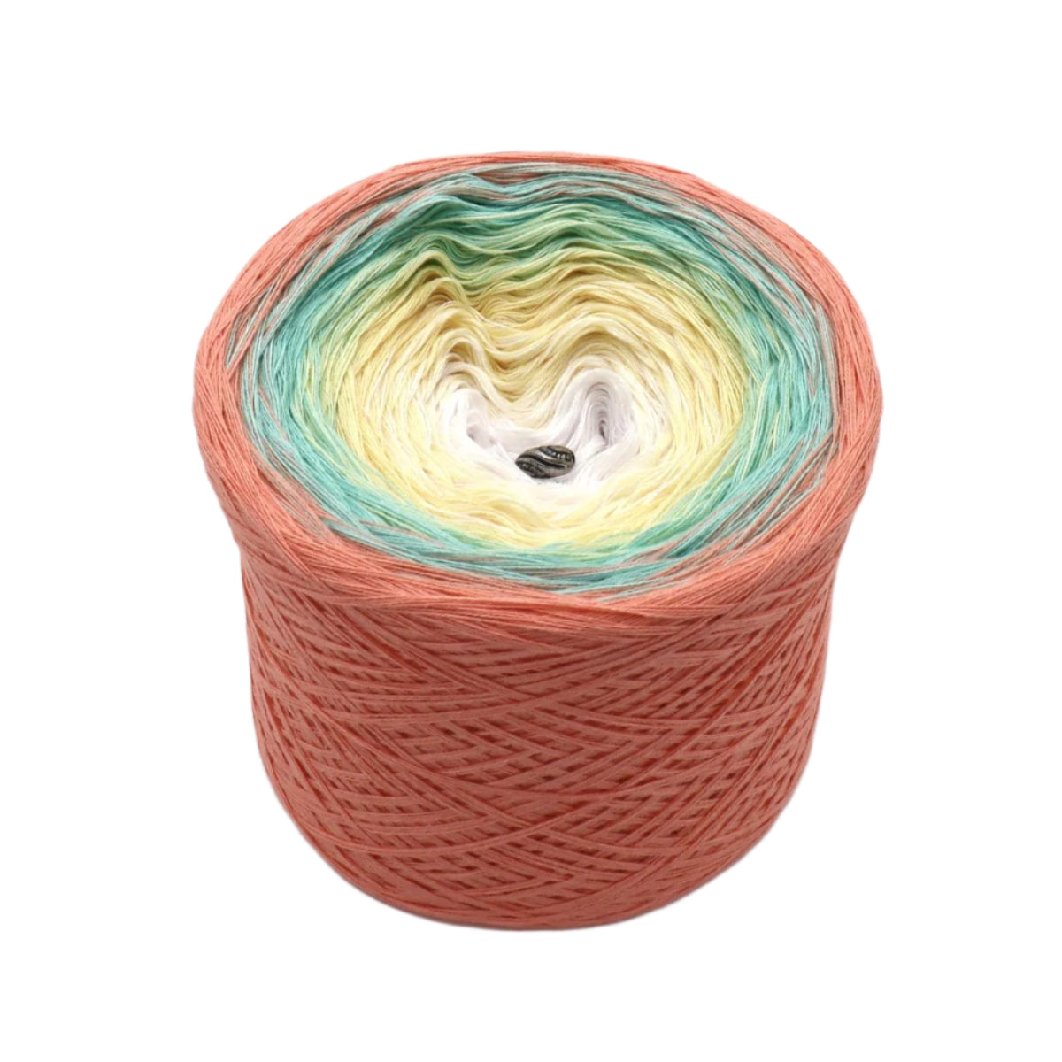 Handgfertigtes Farbverlaufsgarn aus 50 % Baumwolle / 50 % Polyacryl aus unserer Manufaktur im Chiemgau.