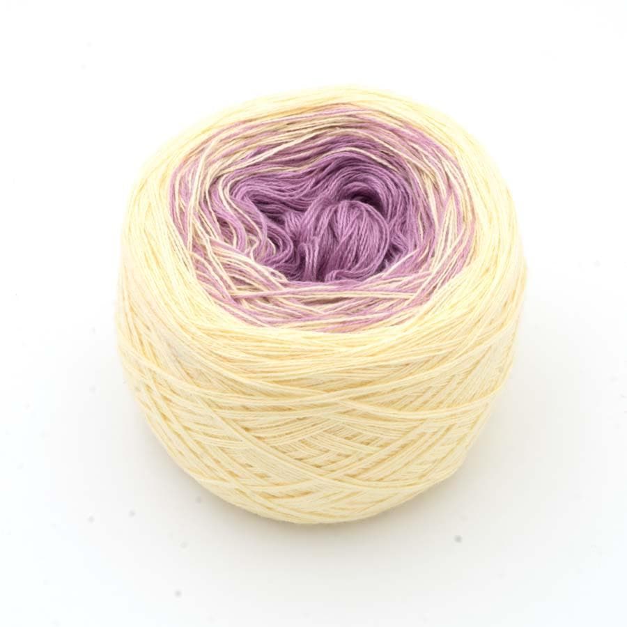 Die einzelnen Fäden werden durch feine, kaum sichtbare Knötchen miteinander verbunden. Diese sind gleichmäßig über das gesamte Garn verteilt und ermöglichen einen ruhigen, durchgängigen Farbverlauf über die komplette Länge. Das Ergebnis ist ein Garn, das sich beim Verarbeiten sanft entfaltet und deinem Strick- oder Häkelprojekt Tiefe, Charakter und eine ganz besondere Ausstrahlung verleiht.