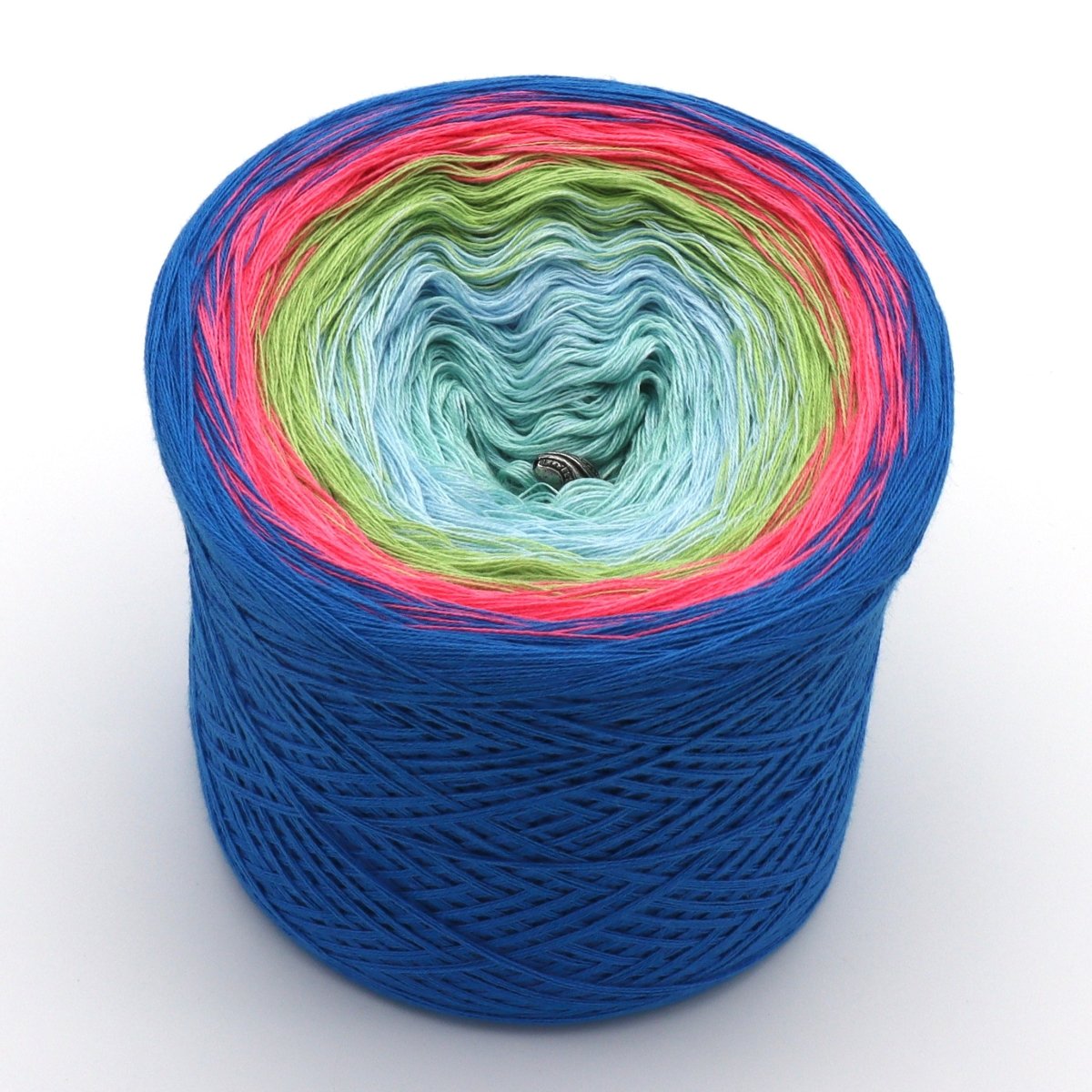 Handgfertigtes Farbverlaufsgarn aus 50 % Baumwolle / 50 % Polyacryl aus unserer Manufaktur im Chiemgau.