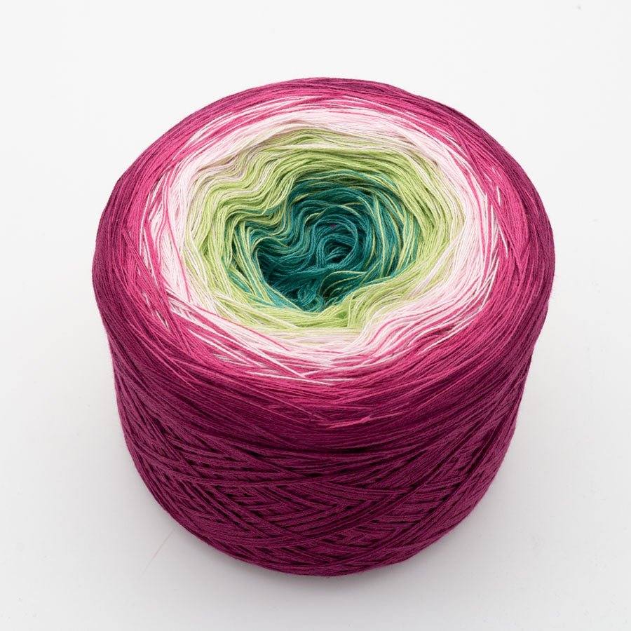 Handgfertigtes Farbverlaufsgarn aus 50 % Baumwolle / 50 % Polyacryl aus unserer Manufaktur im Chiemgau.