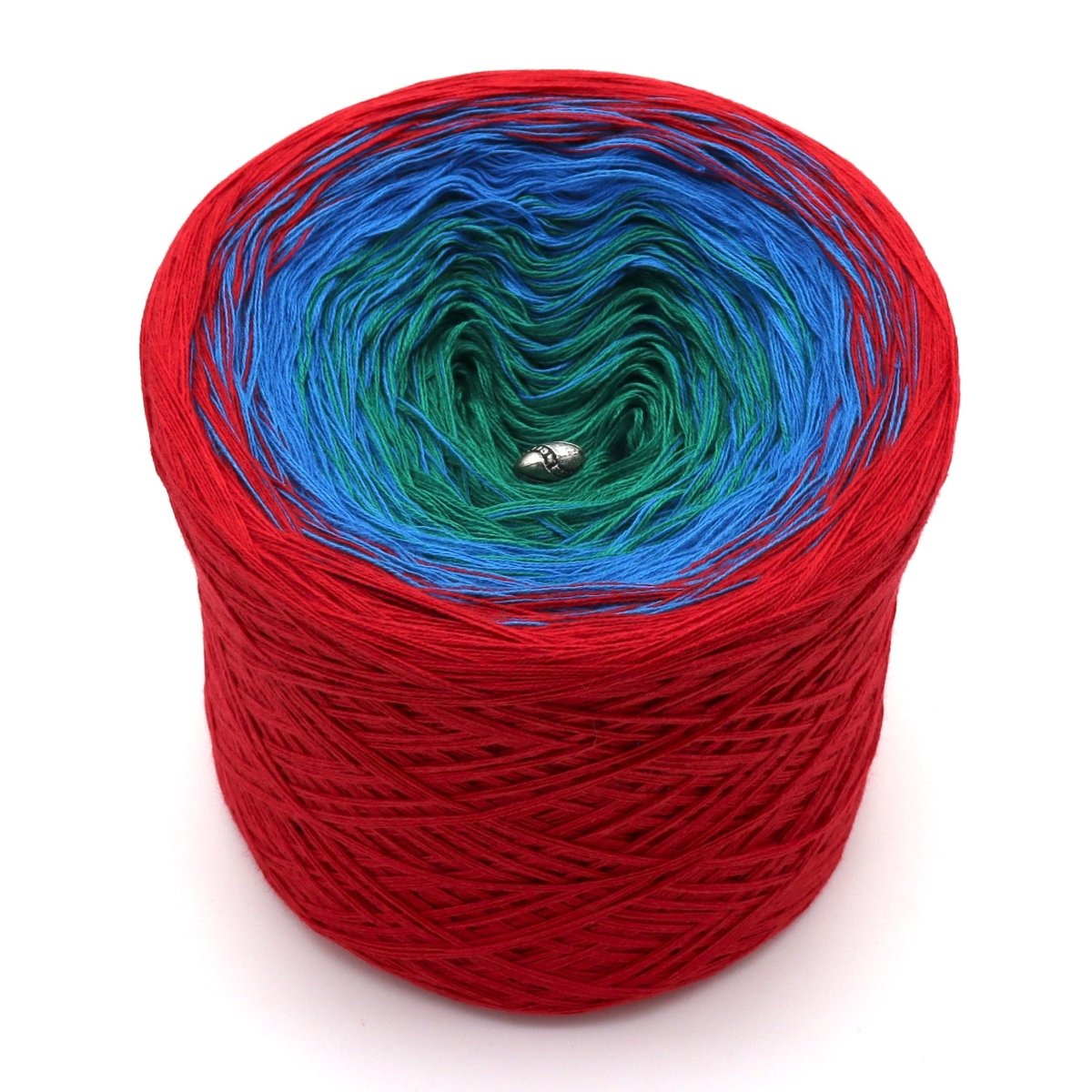 Handgfertigtes Farbverlaufsgarn aus 50 % Baumwolle / 50 % Polyacryl aus unserer Manufaktur im Chiemgau.