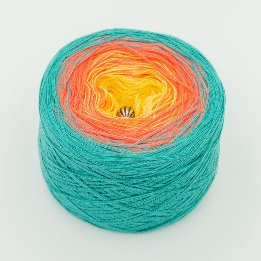 Handgfertigtes Farbverlaufsgarn aus 50 % Baumwolle / 50 % Polyacryl aus unserer Manufaktur im Chiemgau.