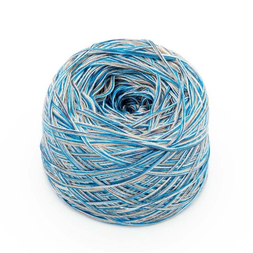 Mehrere Blautöne wie aqua, atlantik und ozeanblau sind hier enthalten in Kombination mit alabaster und schlamm. Sieht das nicht aus wie die Gischt einer tosenden See? Die Einsatzmöglichkeiten dieses Garnes sind vielfältig, wie Kinderkleidung, Pullover, Decken, Tücher etc. Eigentlich für alles. Vielleicht kombiniert mit einem einfarbigen Garn?
